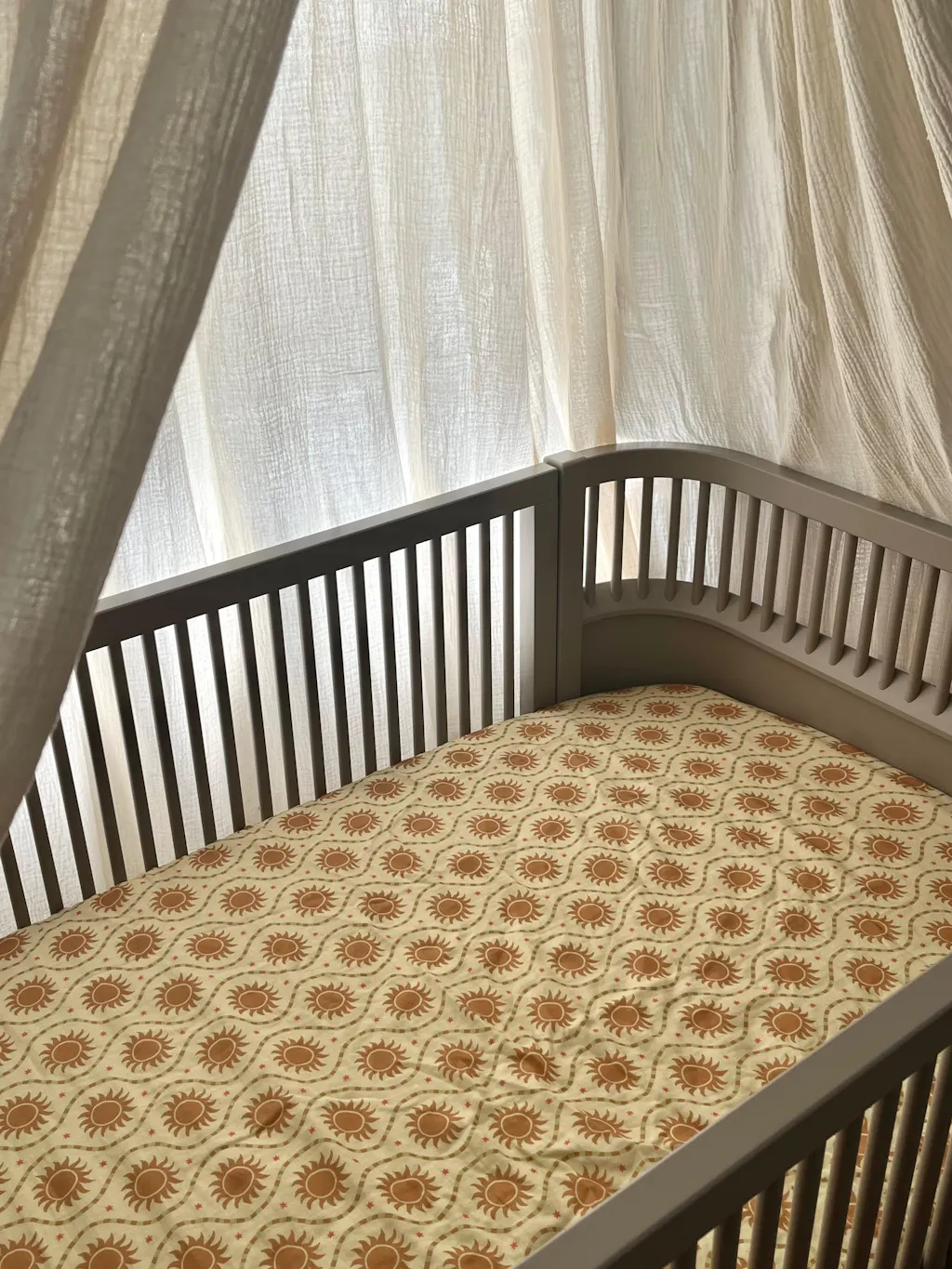 Deze vrolijke zon print is met veel liefde handgemaakt. Dit hoeslaken is gemaakt van hoogwaardig, 100% biologisch katoen mousseline. Deze stof is en blijft zacht om de tere babyhuid niet te irriteren en is ademend. De print komt nog mooier uit wanneer het product is gewassen doordat er dan wat structuur ontstaat in de stof. Met trots dragen we het Oeko-tex certificering, wat betekent dat ons product vrij is van schadelijke stoffen en in lijn is met onze duurzaamheidswaarden.